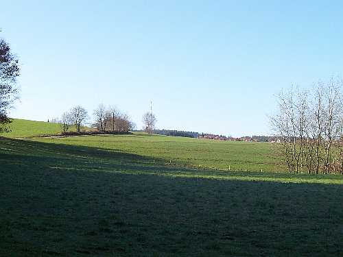 Wir überqueren die Straße und gehen drüben geradewegs auf dem "Oberen Kreutzeichenweg" wieder aufwärts. Doch nach wenigen Metern zeigt die rote Markierung links in den "Höhenweg". Wir wandern nun praktisch auf dem Höhenrücken zwischen dem Steinachtal rechts von uns und dem links gelegenen Ulfenbachtal weiter. Unzählige Marksteine zeigen uns, daß dies auch eine Gemeindegrenze ist. Oben knickt der Weg nach rechts ab und führt kurz bergab. Wir kreuzen einen Fahrweg und steigen geradewegs wieder an. Mehrmals die Richtung wechselnd folgen wir unbeirrbar dem Grenzpfad. Irgendwann geht es wieder bergab, dann haben wir kurz den Fahrweg neben uns. Langsam führt der Grenzweg wieder bergauf und später geht es wieder nahe des Forststräßchens bergab zur Wegspinne an der Wolfsgrube.